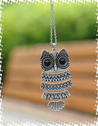 details Domire Lovely Black Eyed Owl Necklace Pendant Necklace