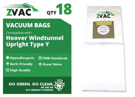 are you looking for best products ? Hoover WindTunnel and Tempo Allergen Cloth Type Y Vacuum Bags - 18 Pack - Similar to Hoover Part # 4010100Y, 4010801Y and 43655082 - Made ZVac is actually our recommendation- This item is for a total of 18 Hoover Y bags. These bags are made by Zvac. They are the nicest generic bag on the market. They capture 99.7% of all dust particles in the bag, as opposed to being exhausted into the air you breathe. These bags even have a dust window so you can see when your bag is full, no more guess work. These are designed to fit all Hoover Windtunnels models that use a bag. Will not work with Hoover Windtunnel V2 uprights that can be converted from bagless to bagged. . . . that's product is best for you, because this product are designed to provide good. you can read about this more product image and reviews fully , You can found this products from best stores like amazon to make deal this products or similar products online.