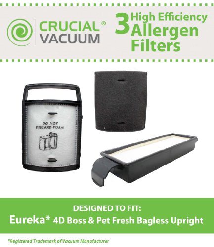 Should you be looking to find the best a good idea ? Eureka Filter Kit Designed To Fit Eureka 4D Boss, Pet Fresh Bagless Upright; Compare To Part # 62733, 62733-4, DCF15, DCF8, DCF-8, 73494, 61830, 61840, 61830A-2, 74038; Designed & Engineered By Crucial Vacuum is actually our best choice- This is a High Quality Filter Kit Designed To Fit Eureka 4D Boss, Pet Fresh Bagless Upright. Compare To Part # 62733, 62733-4, DCF15, DCF8, DCF-8, 73494, 61830, 61840, 61830A-2, 74038. Designed & Engineered By Crucial Vacuum. Absolutely Essential For Allergy Sufferers! Recommended to change your filters every 3 to 6 months.